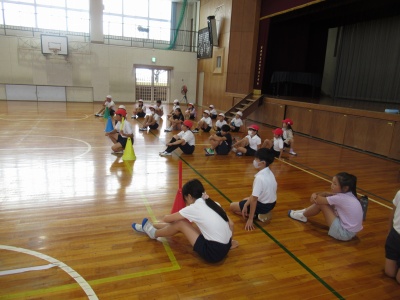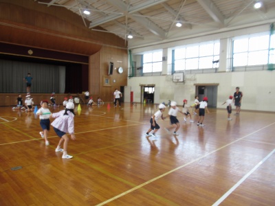 2時間目後の休み時間に、紅白対抗リレーに出場する選手は、練習を行いました。1年生~6年生へそれぞれのチームでバトンをつなぎます。低学年の子にとっては、バトンパスは練習する機会がなく、初めての子もいます。まずは、ぶつからないパスの方法を取得し、次に走りながらもらうパスをやってみてという風に、レベルアップを目指してがんばっています。運動会では盛り上がる種目のひとつです。運動場での練習もしていきます。頑張ってください!