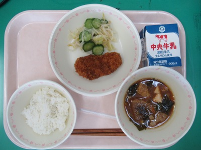本日の献立:ごはん・牛乳・アジフライ・キャベツの塩レモン和え・わかめの味噌汁