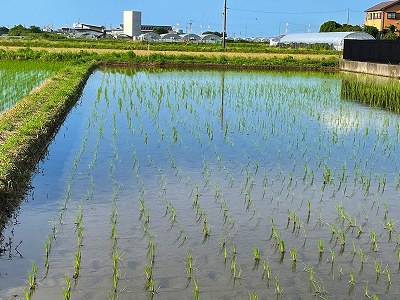 今日は梅雨の晴れ間でした。5年生が10日前に田植えした田んぼの様子を見に行きました。心なしか苗が分げつして増えたように見えました。これから夏に向かい、ぐんぐんと伸びることでしょう。5年生もお米の苗に負けず、ぐんぐん伸びてくださいね。