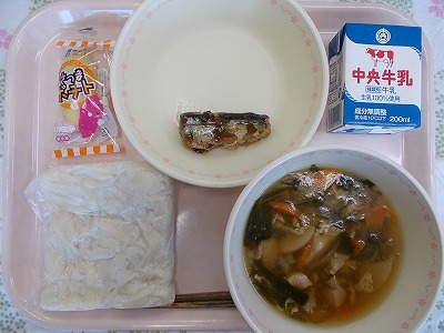 越津ねぎと油揚げのきしめん 牛乳 さんまの生姜煮