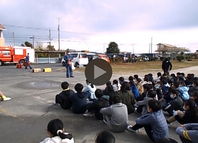 本日の避難訓練には消防署の方を3名お招きし、児童向けの消火訓練を行っていただきました。