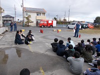 消火器の種類や扱い方を教えていただいた後、児童を代表して児童会役員の子どもたちが消火訓練を行いました。