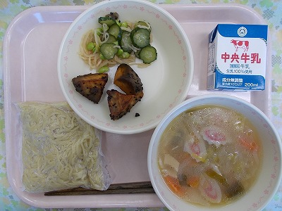 博多風豚骨ラーメン 牛乳 大学いも 切干大根のかみかみ和え