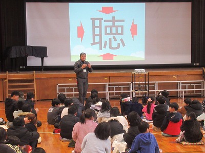 今回は、講師の先生に来ていただき、全校そろって「コミュニケーション」に関するお話を聞きました。1対1のペアでお話を話していると、話をいかに聴いてくれているのかが、話しやすさにつながるし、お互いが安心したり気持ちよくなったりするのです。また、「聞く」と「聴く」の違いも教えていただき、目と心をもって聴くことがたいせつなのですよね。コミュニケーションとは、お互いの考え・気持ちを理解し合うことを学ぶことができました。