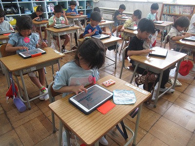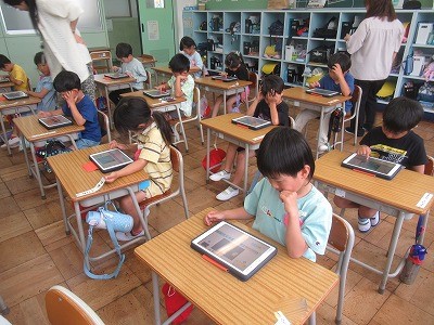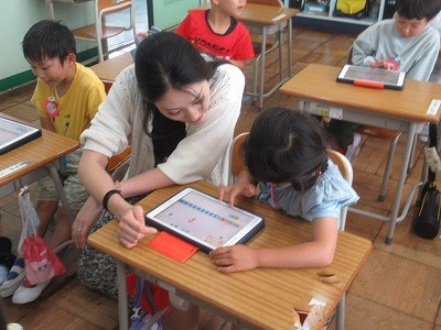 市のICT支援員さんに入っていただき、タブレットを活用した学習をしました。
