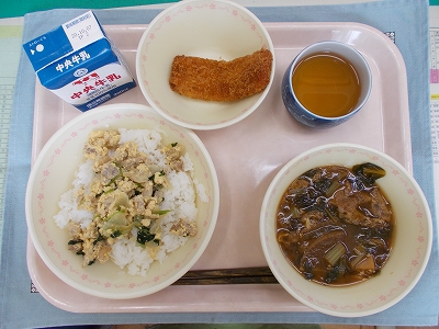 ご飯 牛乳 名古屋コーチン親子丼 イカフライ あおさ汁