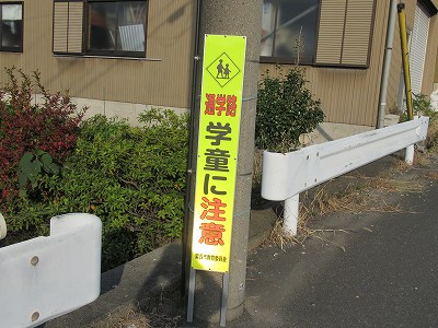 昨今、通学途上での悲惨な交通事故が後を絶ちません。この看板を車のドライバーさんが見つけ、もしかしたら児童生徒が横断しているかもしれないと思い、注意しながらスピードを落とし安全運転をしてくれることを願っています。