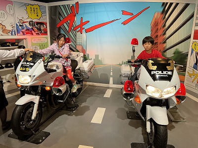 午後からは、愛知県警に移動をして、体験コーナーで、クイズやゲームをしながら、警察の豆知識を勉強しました。また通信指令室や交通管制センターで実際に警察官のみなさんが働いている様子も見ることができました。