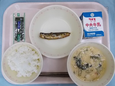 ごはん 牛乳 いわしの梅煮 トマトと玉子のふんわり汁