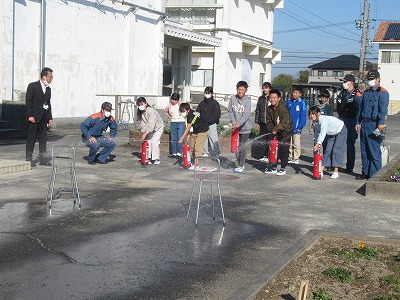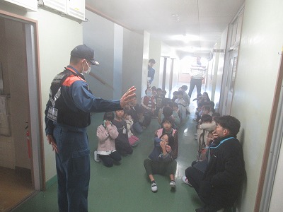 避難訓練を行いました。今回は、総合訓練として、市消防職員の方に来ていただき、みなさんの避難の様子を見ていただいたり、実際に警報機を鳴らし119番通報を行ったりしました。