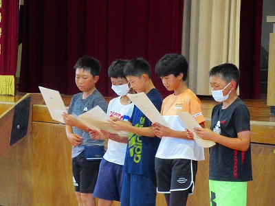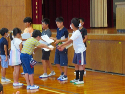 最後に生徒指導担当の先生から、夏休み中、水の事故に遭わないよう、火に気を付けるようお話がありました。また、お金の使い方についても、おうちの方が稼いでいただいたお小遣いを貸し借りしないことや困ったときは大人に相談することを教えてもらいました。