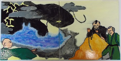 年末から放課などの時間を利用しながら、子どもたちが一生懸命に制作してくれた勝幡駅前のタイル画です。作品の展示を通して、多くの方々に立田地区の昔話を知ってもらうとともに、子どもたちの自分たちが生まれ育った地域への郷土愛を感じ取ってもらえればと思います。
