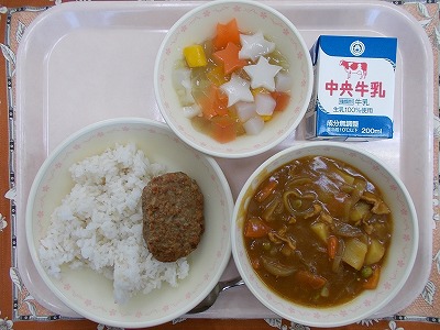 ハンバーグカレー(麦ごはん) 牛乳 クリスマスゼリー
