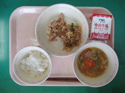本日の献立:ごはん・牛乳・今治焼き鳥・即席漬け・ほうとう