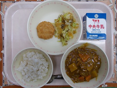 カレーライス(麦ごはん) 牛乳 ヒレカツ 福神和え