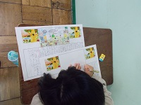 今日は清書の時間です。自分の考えや思いが伝わるように、下書きの書き間違いなどを見直して一生懸命に清書する子どもたちの姿が見られました。