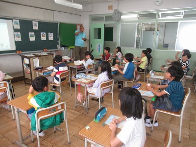 初めて聞く言葉や、日常で聞いたことがある表現もあります。絵があると、分かりやすいですね。カードも活用して、英語の表現に親しみ、活動も交えて学びました。