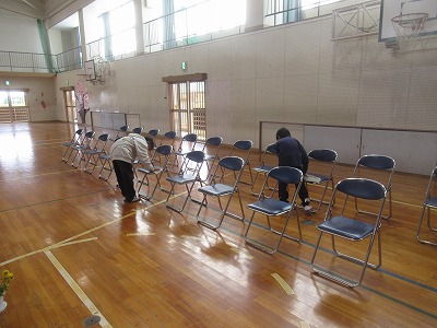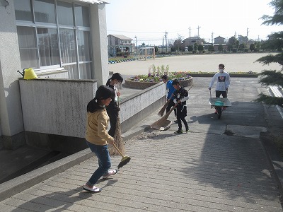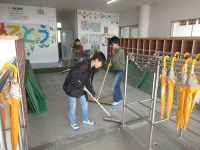 明日の入学式のために準備を行いました。新6年生は、登校し体育館、教室、昇降口、トイレ等、校内の各場所で清掃や椅子並べ、飾りつけをしました。