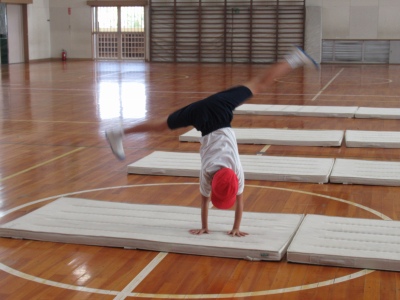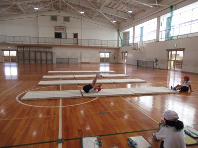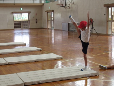 3年生は、体育の時間にマット運動の発表会を行いました。各自が、今までの練習した成果を発表しました。