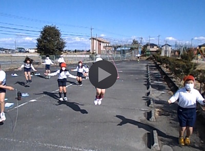 今日はグラウンドの状態が良くないため、校庭横の駐車場での短なわとびです。自分が得意な技に磨きをかけようと、一生懸命に取り組む姿が見られました。