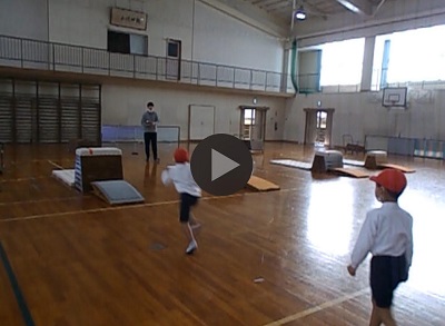 一人2回のテストです。勢いよく踏み切り、着地のポーズまでしっかりと演技していました。演技の後には友達から拍手をもらってほっとした表情を浮かべる子どもたちの姿が見られました。