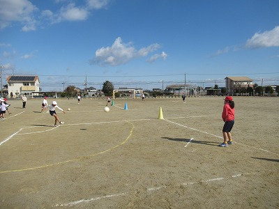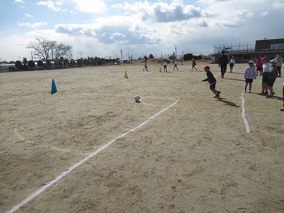 どのように守るか、どこに蹴っていくか、技量だけでなく作戦も考えながら、チームメイトを応援する姿もありました。寒い空気の中ですが、日差しの下、楽しく頑張っています!