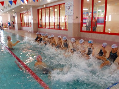 今日は、本年度初の水泳指導でした。朝日スポーツクラブさんに市有バスで、低学年高学年に分かれ出かけました。専門のインストラクターの方々に教えていただき、子ども達は楽しく水泳に取り組んでいました。
