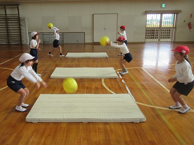 勢いをどうするか?マットのどこに弾ませるか?相手の動きも考えながら、ゲームを楽しむことができていました。