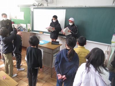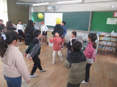 今日は、決めた遊びを行う回です。あいにくのグランド状況なので、急遽室内で行える遊びに変更してもらって伝えてもらうなどありました。やり方の説明からふりかえりまで、5年生がしっかりと進行しました。6年生のサポートもありがとうございます。