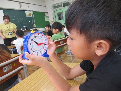 手元にあるとけいで、何問も繰り返し練習して、読みを確認していきました。