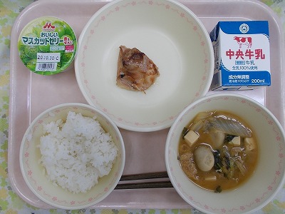ごはん 牛乳 鶏肉のこうじ焼き 白味噌汁 マスカットゼリー