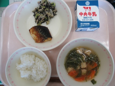 ご飯 牛乳 サバのカレー焼 ひじきの和え物 みぞれ汁