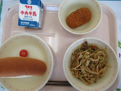 小型ロールパン 牛乳 栃木焼きそば カニクリームコロッケ ミニトマト