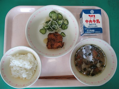 今日の献立:ごはん・牛乳・ゼリーフライ・即席漬け・根菜たっぷり汁