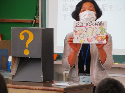 今日は栄養教諭さんによる栄養指導が6年生にありました。栄養教諭さんから、水泳指導から帰り15分程度ですぐに給食の準備ができたことやいつも残菜がないことを褒めていただきました。栄養指導ではクイズを通していろいろな食品やその栄養について学ぶことができました。