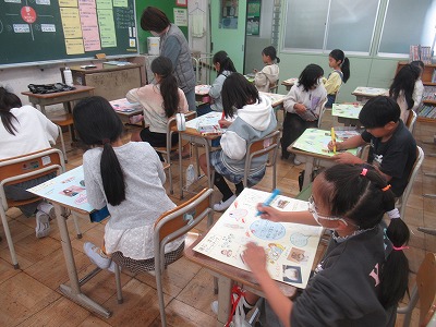 4年生は、講師の方に来ていただき、1~6時限すべてドリームマップの授業を行いました。