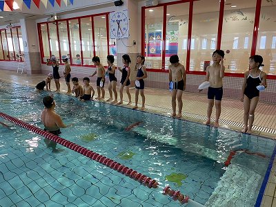 今日は本年度最後の水泳指導の日でした。最終日のため、泳力の検定も行いました。皆個々に記録を伸ばしていました。朝日スイミングスクールのスタッフの皆様、ご指導、ありがとうございました。