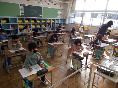 教室では宿題を提出したり、宿題の答え合わせをしたりする子どもたちの姿が見られました。