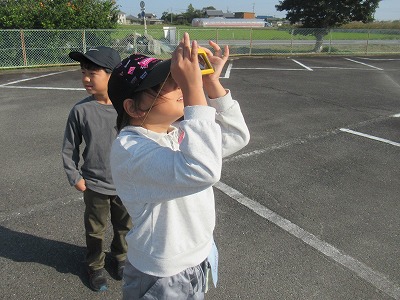 今日は終日天気が良く、おひさまも出ていたので、かげの動きを観察することができました。