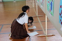 今日と明日の2日間、作品展を開催しています。今日は子どもたちが自分の作品や友達の作品を鑑賞しました。