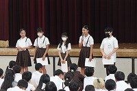 今朝は、給食委員会による集会を開きました。給食の献立についての紹介や、食べ物の栄養にかかわるクイズを行いました。これからも、食についてより関心を高めてほしいです。