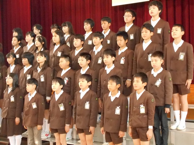 修了式を行いました。4年生の児童が代表で、1年間を振り返り、来年度の目標を発表しました。修了式の後には、各学年、教室移動をし新しい教室に入りました。