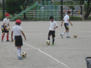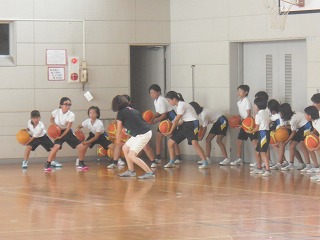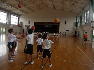 秋のサッカー・バスケットボール競技会に向けて、夏休みの部活動が始まりました。4~6年生の希望者が、練習予定日の中から都合のいい日に登校して練習を行います。