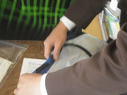 それでも、うまくひもを通して実際に着用している子どもたちは、感慨深げに見えました。