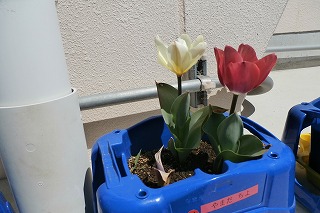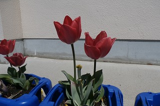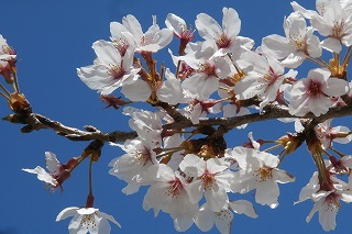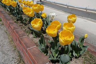 昨日の雨が嘘のように、明るい太陽のもとチューリップも桜も満開です。入学式まであと2日、ちょうど見ごろになりました。