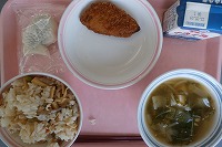 たけのこご飯 牛乳 アオサ汁 ミニ鯛焼き