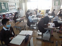 3年生が国語で短歌を学習していました。自分の気持ちを直接的な言葉で表すのではなく、他の人とは違う心の中の微妙な思いを、5・7・5・7・7のたった31文字の中で様々な表現を使って表す短歌ですが、元々書かれている文は5・7・5・7・7に切れてはいません。子どもたちは読みながら指折り数えて切れ目を確認していました。