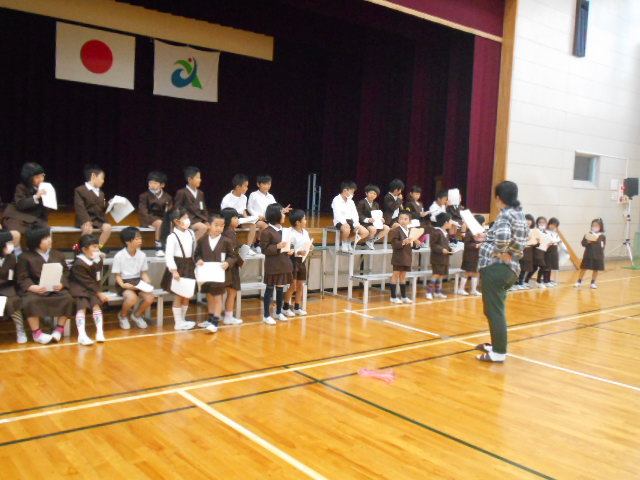 学習発表会の練習も始まりました。まずは、台本の読み合わせと、大きな声を出す練習です。
