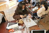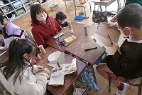2年生が生活科の「おもちゃランド」の準備を進めています。自分たちで遊ぶのも楽しいですが、ほかの子たちが楽しそうに遊ぶことを想像しながら、おもちゃや賞品を作るのも楽しそうです。折り紙の折り方をタブレットで調べながら作っている子もいました。