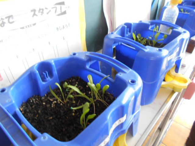 2年生は、野菜を育てています。人参、ほうれん草、小松菜、パセリ、サニーレタスと自分の好きなものを育てます。寒い日には、教室の中に入れています。